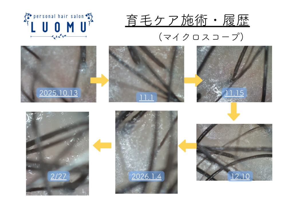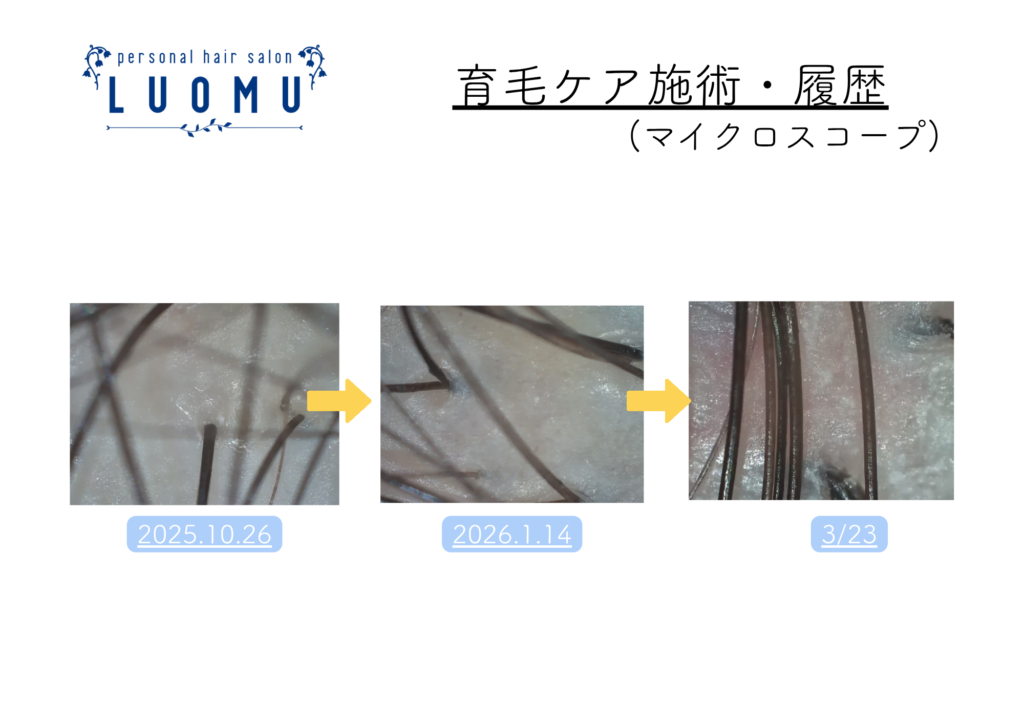 - マイクロスコープによる現状把握: 髪を育てる「土壌」である頭皮が、今どんな状態(詰まり、乾燥、炎症など)にあるか、髪の量や太さを可視化します。